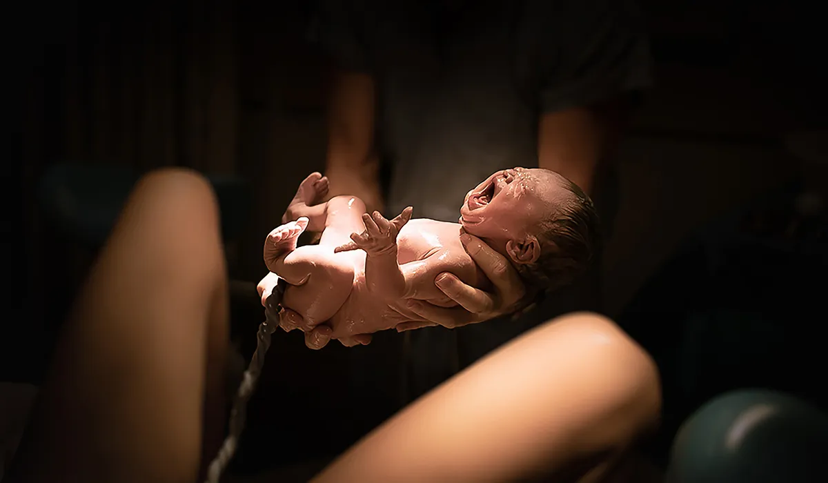 Lääkäri saapui, tarkisti tilanteen ja totesi, ettemme ehdi sairaalaan, vaan vauva syntyy kotona. Ei kulunutkaan kuin hetki ja vauva oli jo maailmassa.